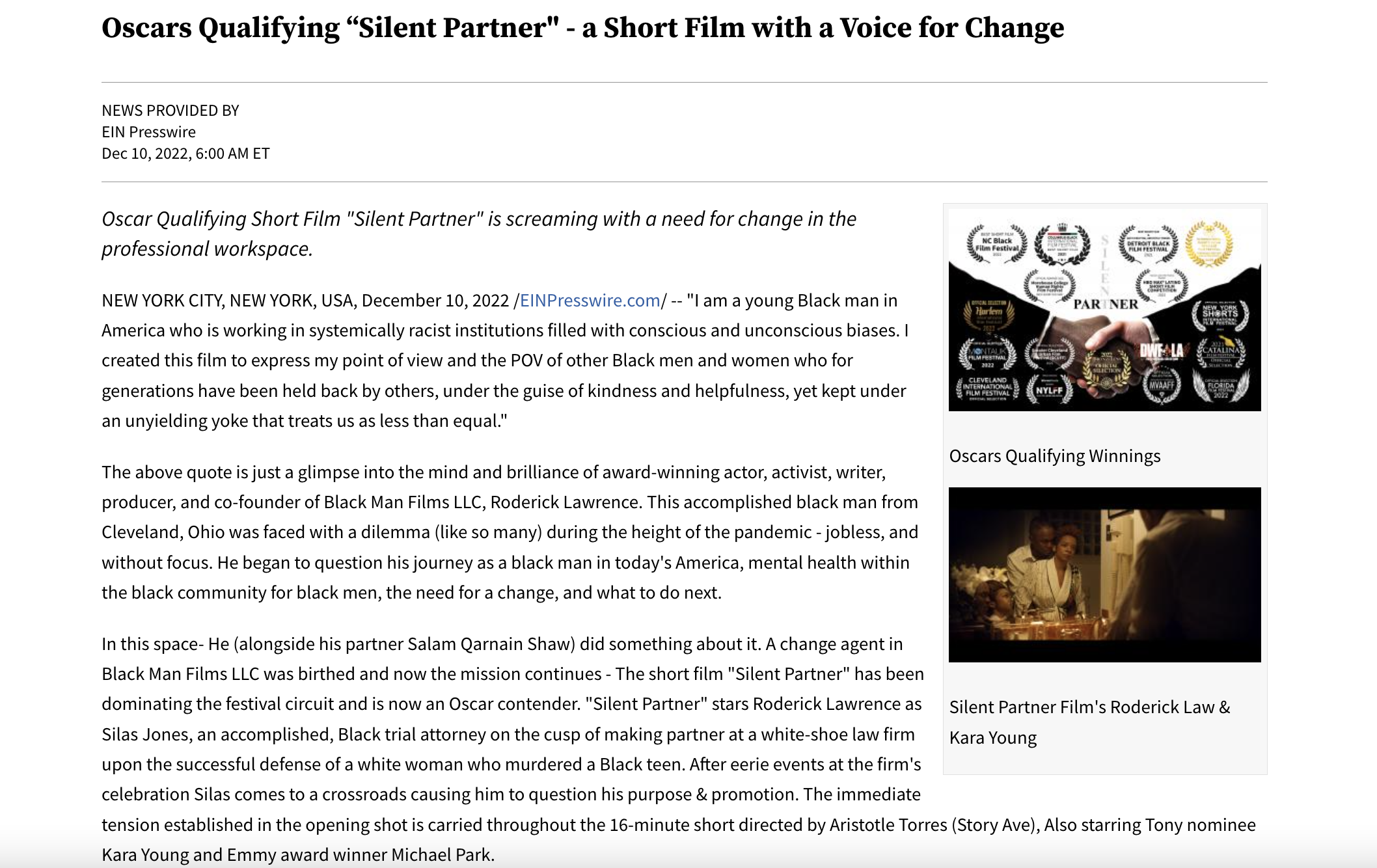 Roderick Lawrence Awarded Best Actor at the 2022 BronzeLens Film Festival of Atlanta, BroadwayWorld.