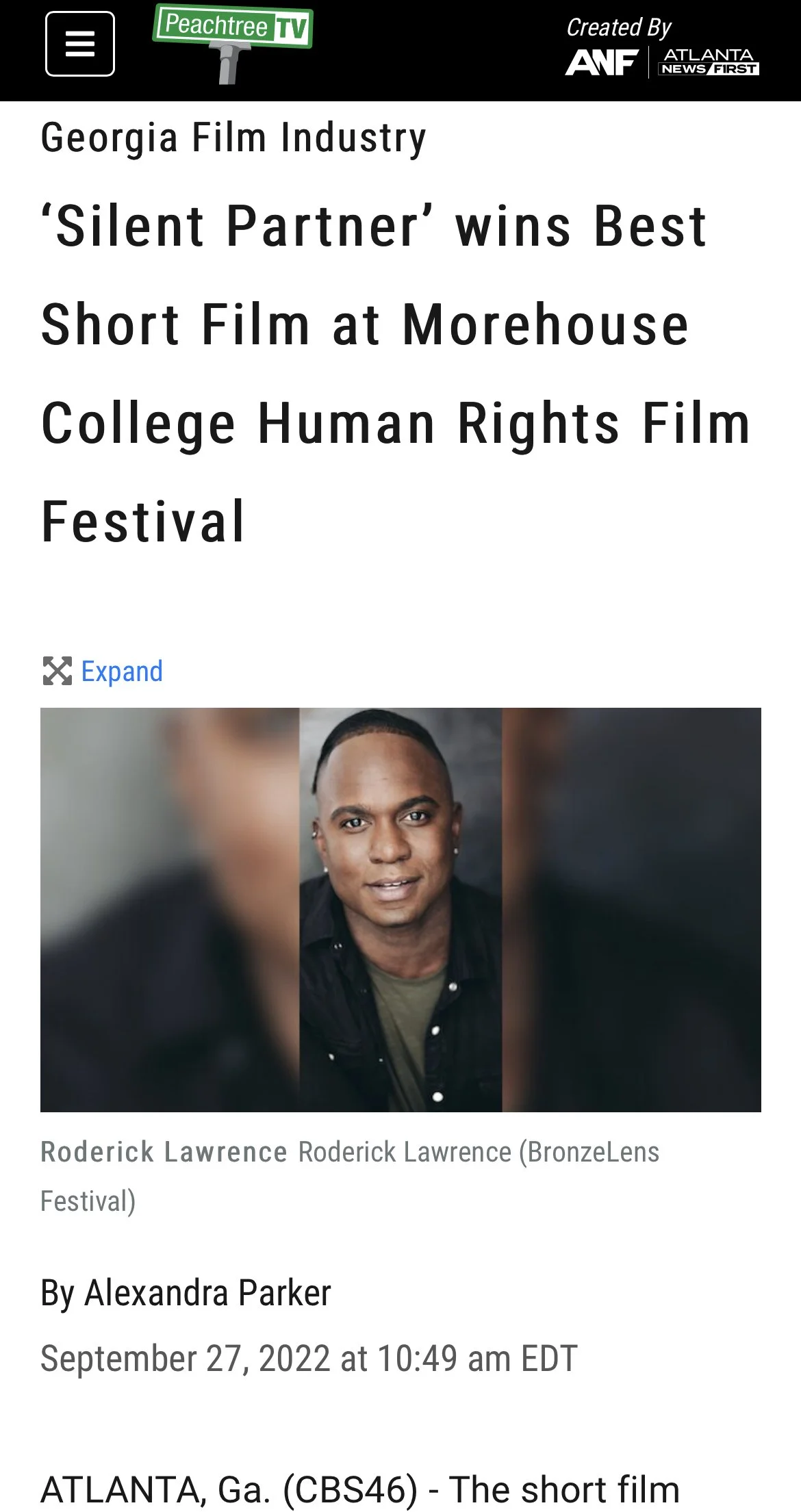 Roderick Lawrence wins BronzeLens Festival’s Best Actor award, CBS46 Atlanta.